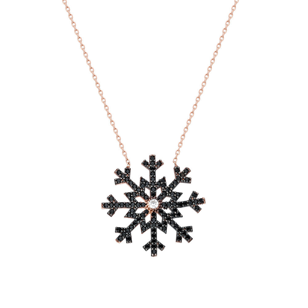 Women's Black Zircon Gemmed Snowflake Pendant 925 Carat Silver Necklace